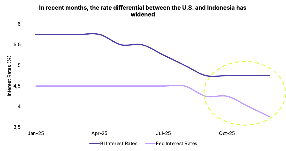 However, BI signaled room for policy easing in 2026, as inflation is expected to remain within the target range of 1.5% – 3.5%. That said, any rate cuts will depend on inflation staying within the target range and global volatility being manageable.