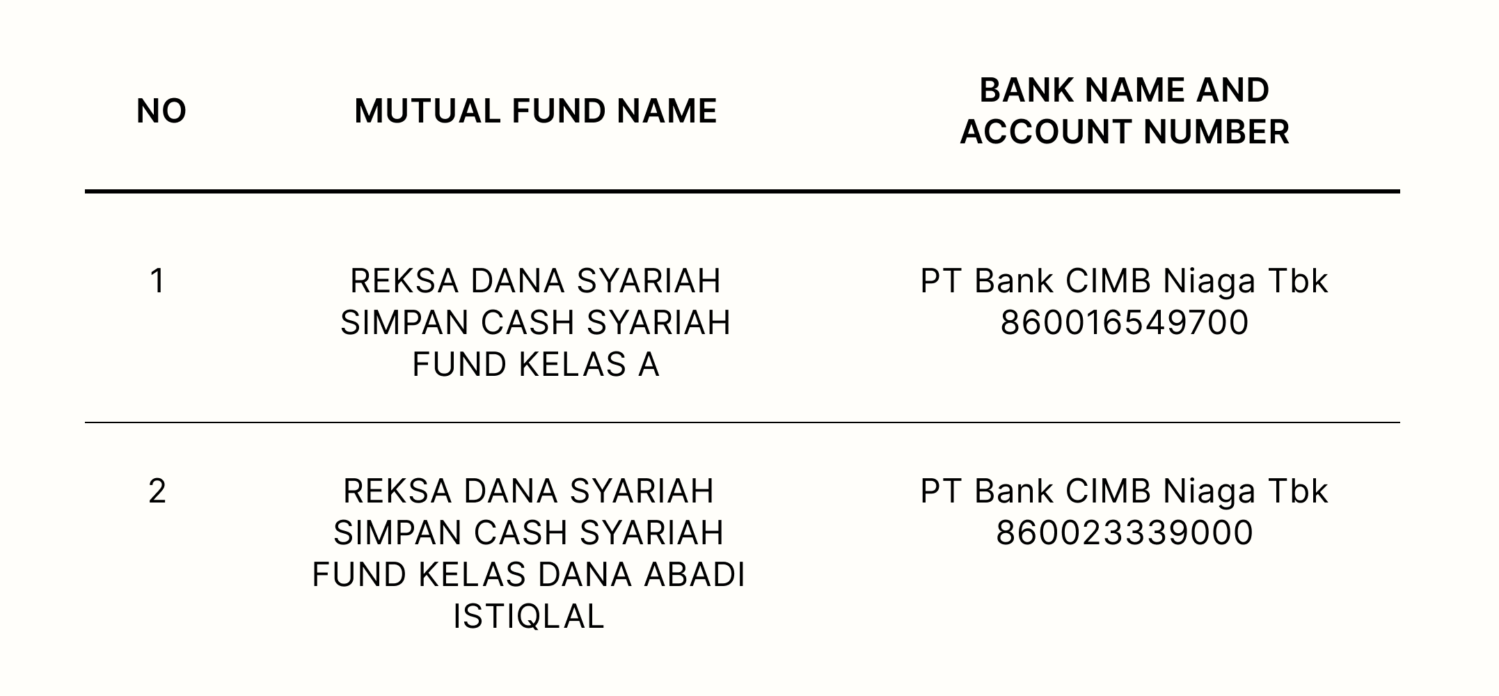 2. Customers who already hold Participation Units in the Simpan Sharia Cash Syariah Fund Mutual Fund prior to the effective date of the Multi-Class feature implementation will automatically be converted to Participation Units of the Sharia Cash Syariah Fund Mutual Fund Class A as of March 3, 2026.
