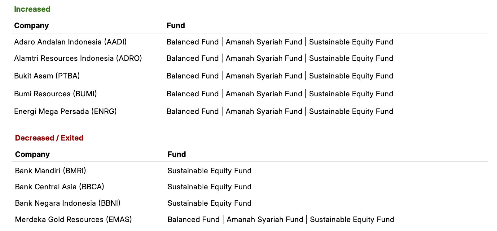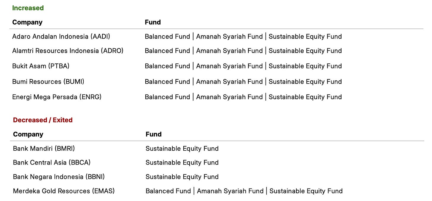 In fixed income, we maintained our duration positioning. While yields have begun to ease, we are closely monitoring risks arising from developments in the Middle East, particularly through their direct impact on oil prices, bond yields, and the Rupiah.