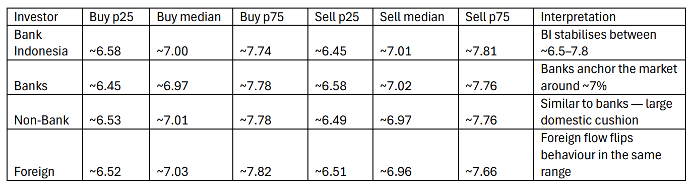 In fact, our earlier stress-test analysis shows that even in a scenario where foreign investors exit entirely, yields would move only marginally, as domestic institutions—Bank Indonesia, insurance companies, and pension funds—are likely to step in and absorb the supply.