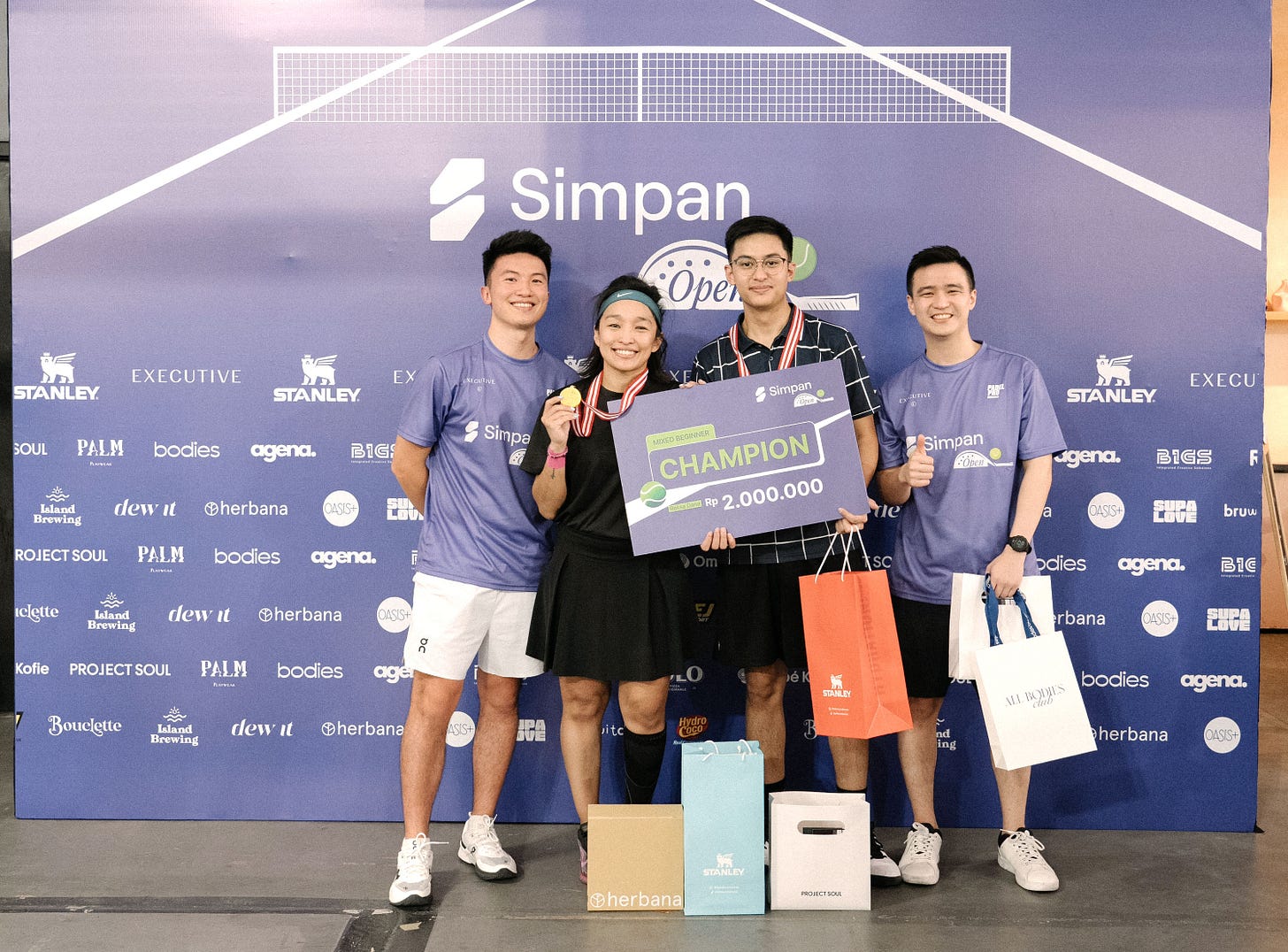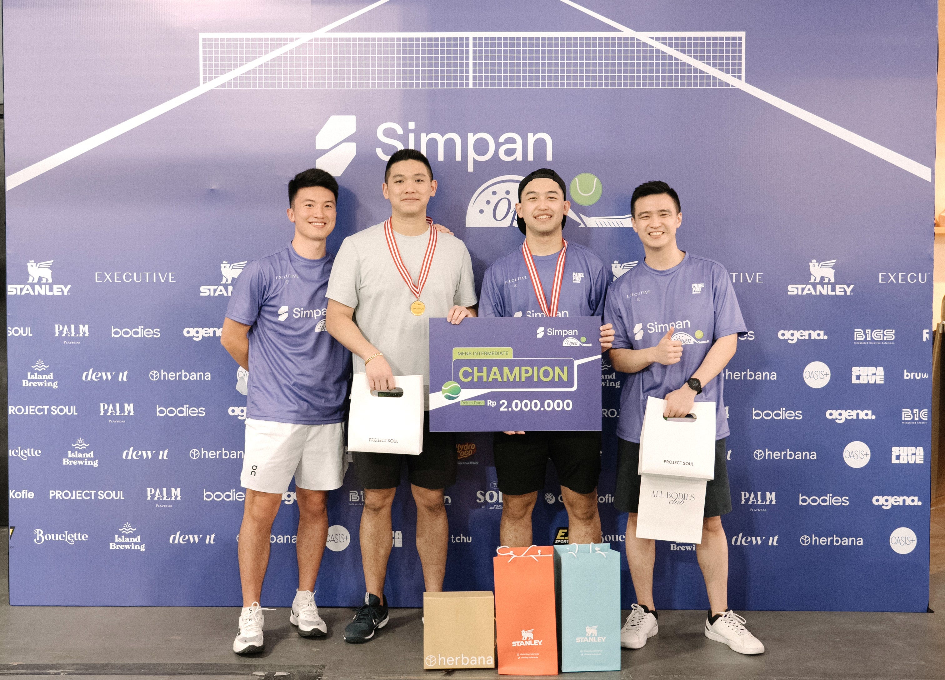 The tournament was divided into two categories: Mens Intermediate and Mixed Beginner. In the inaugural Simpan Open, Diego Goentoro and Bryan Husin emerged as champions in the Mens Intermediate category. Patrick Tjandra and Arthur Irawan finished as runners-up, while Andre Aristio and Irwan Hadi Prasetiyo secured third place. Meanwhile, Armansyah Adhityo Pramono and Reinata Sidik won the Mixed Beginner category. Felicia Fanny and Richard Permadi came in second, followed by Michael Citra and Anggie Saputra in third.
