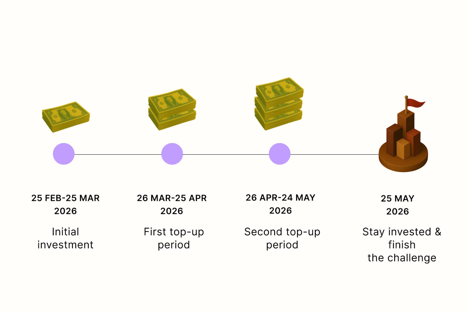 3. Stay invested. To remain eligible, you must stay invested in the Actively Managed Portfolio from your initial investment until 25 May 2026.